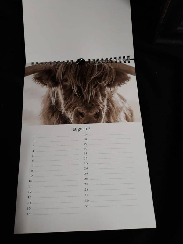 Verjaardagkalender met afbeelding van de populaire hooglander.